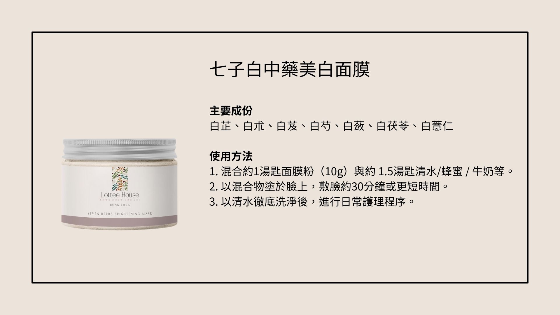 七子白中藥美白面膜x1